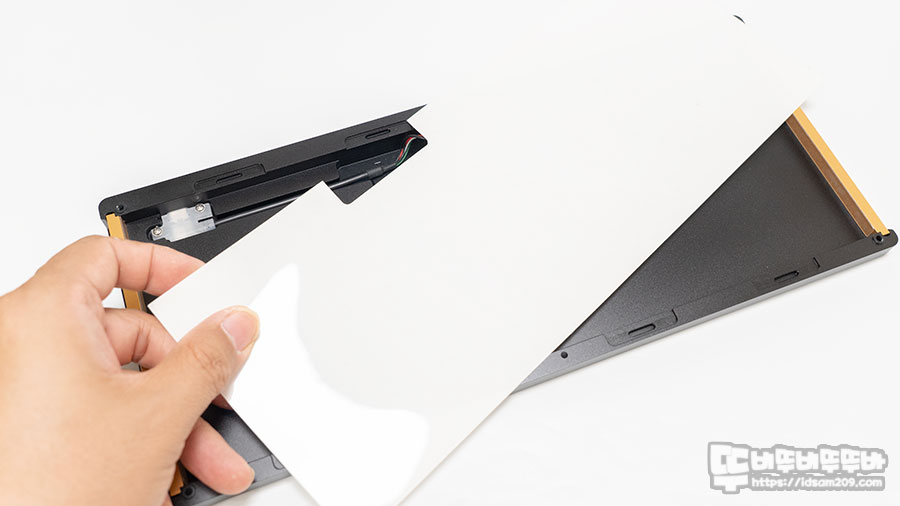 키보드 하판 내부에 쇼트방지를 위한 PET 필름을 부착해줘야 합니다.
