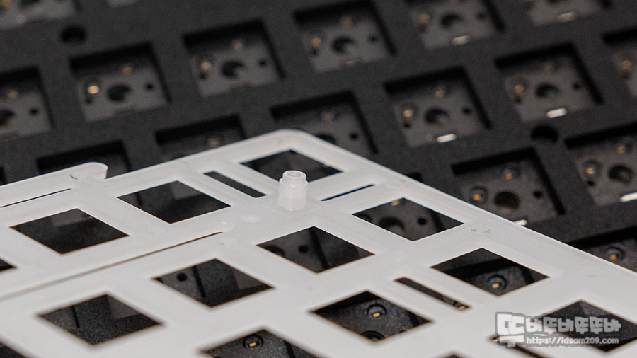 보강판 + 3mm 플렛 폼 + 스위치 패드 + 기판은 보강판 아래에 돌출된 나사 가이드를 기준으로 잘 맞추시면 간편하게 재조립이 가능합니다.