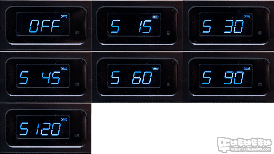 취침모드의 경우 조작 방법이 조금 독특한게 제품 중앙 부분의 밝기 선택 버튼을 길게 누른 후 볼륨 다이얼을 조절하여 시간을 변경할 수 있으니 사용 방식을 참고하시기 바랍니다.