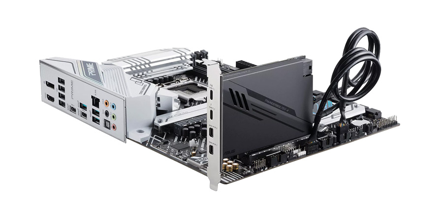 Thunderbolt 헤더를 지원하지만 기능을 사용하기 위해서는 별도로 판매 중인 ASUS ThunderboltEX 4 애드온 카드를 구입해야 하니 아래 사진을 참고하시기 바랍니다.