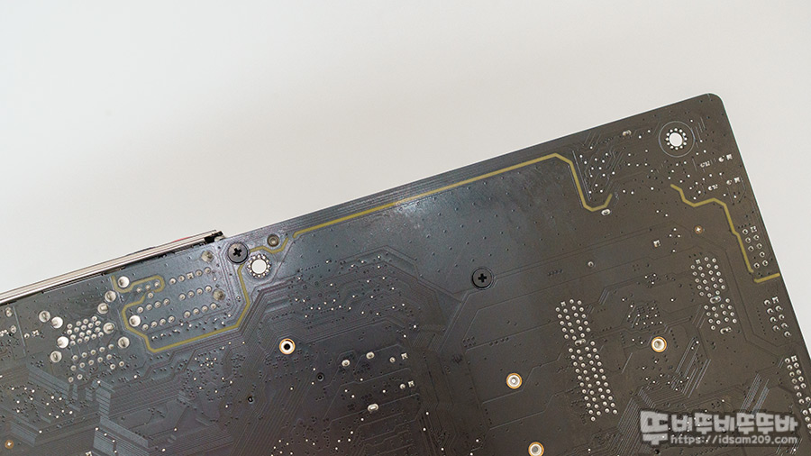 메인보드 뒷면에서도 확인할 수 있는 오디오 PCB 레이어 모습.
