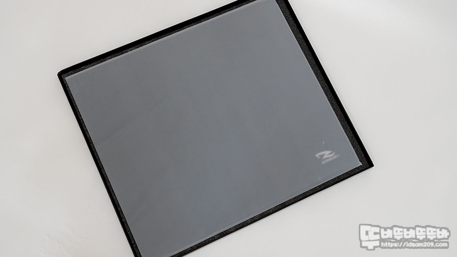 천패드의 경우 천을 짜는 모직의 형태로 어느 정도 패드의 성향을 유추할 수 있지만 강화유리패드의 표면 처리는 육안으로 보아도 어떤 느낌인지 파악하기 힘드네요.