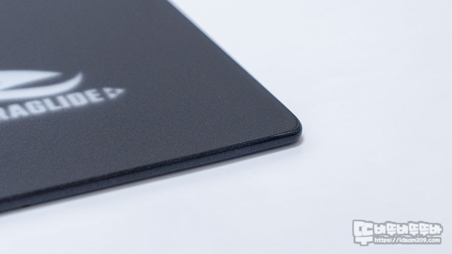 단순 강화유리 패드가 아닌 파손을 대비한 비산방지 처리와 마우스 무빙을 위한 표면질감 처리로 꽤 고급스러운 느낌을 주며 패드의 모서리 부분의 라운딩 처리 및 엣지면에 라운드 처리로 안심하고 사용할 수 있으며 특수 표면처리는 스피드와 제동력을 동시에 제공하는 하이브리드 패드 느낌을 주고 있습니다.