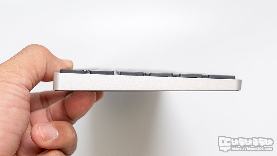 약간의 경사로 디자인된 알루미늄 하우징은 키보드 양쪽 끝을 잡고 비틀어도 비틀리지 않을 정도로 견고하네요.