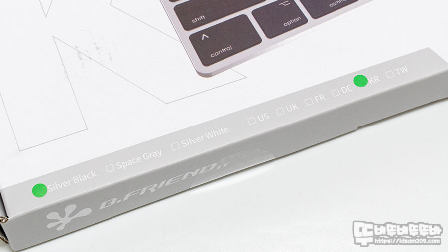 제품의 컬러와 키캡의 각인에 대한 부분 그리고 모델명과 알루미늄 블루투스 키보드에 대한 문구를 확인할 수 있습니다.