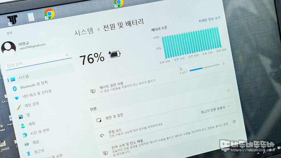 노트북이 76% 잔량이 있어서 그런지 PD 충전을 지원하는 보조 배터리를 이용하여 충전 시 약 16.5W로 출력으로 충전이 되네요.