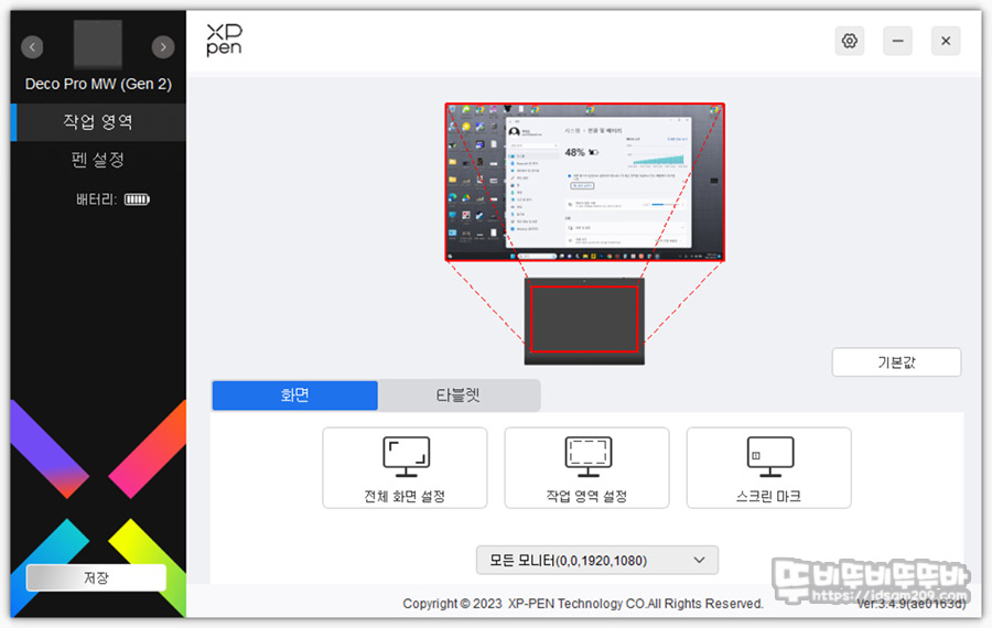XPPEN의 통합 소프트웨어를 설치하게 되면 Deco Pro MW (Gen2) 펜 타블렛과 펜 무선 타블렛 키보드를 선택하여 설정을 할 수 있는데요.