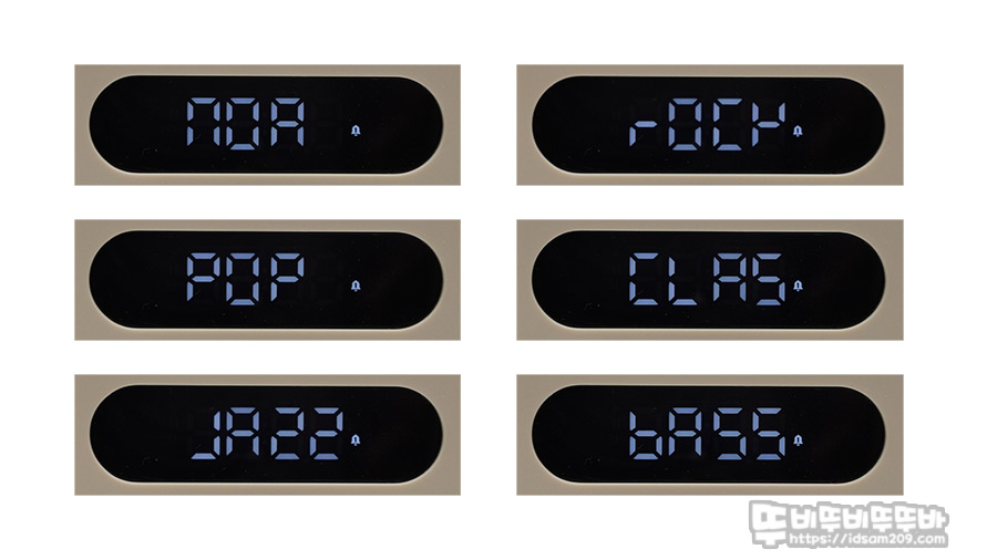 음악 감상 시 음색 변화로 다양한 음색을 경험할 수 있게 지원하는 EQ 설정 시 LCD에 표기되는 모습.