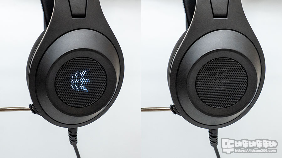 좌우로 대칭형으로 되어 있지만 왼쪽에 마이크와 유선 케이블이 부착되어 좌우가 구분됩니다.