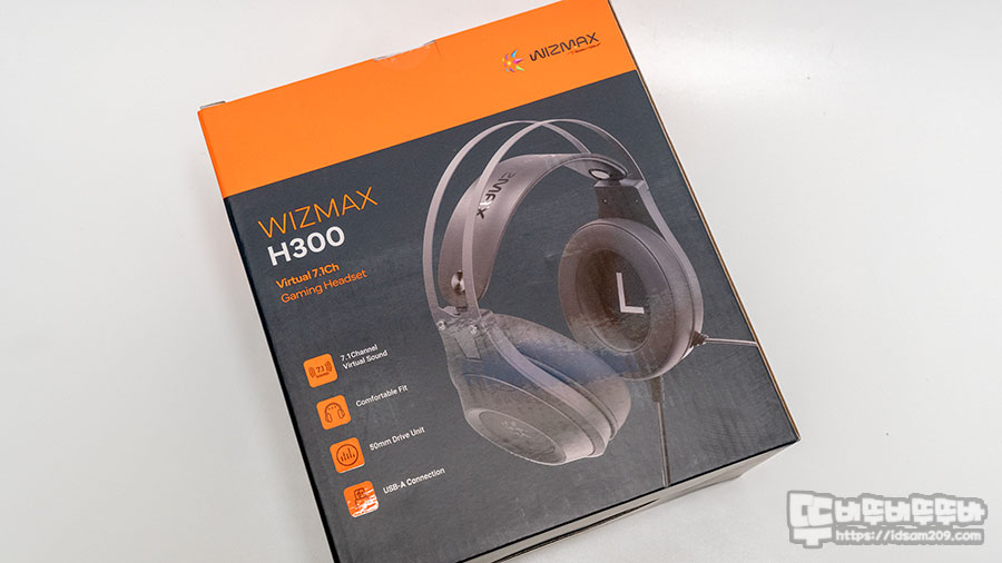 패키지에는 제품의 이미지와 특징인 가상 7.1채널, 50mm 드라이버 유닛 사용, USB 방식임을 표현하고 있네요.
