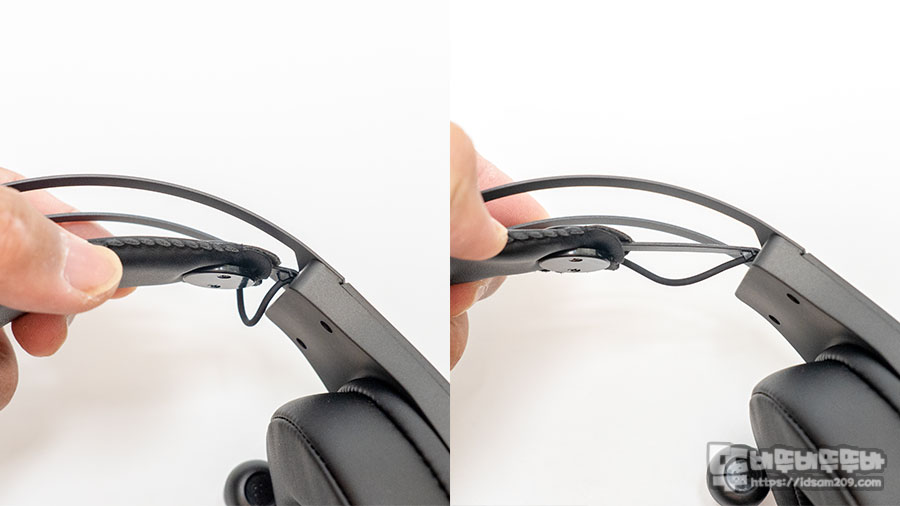 좌우에 길이 조절 방식의 헤드셋과 다르게 헤드셋을 착용하는 순간 알아서 좌우 균형을 잡아주는 서스펜션 방식은 빠르게 착용할 수 있어 좋습니다.