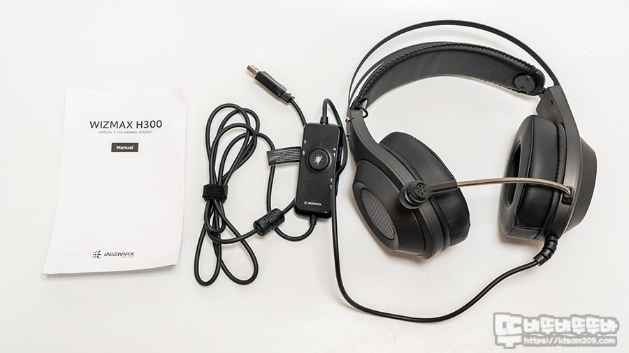 제품은 WIZMAX H300 헤드셋 본체와 사용 설명서로 구성되어 있습니다.