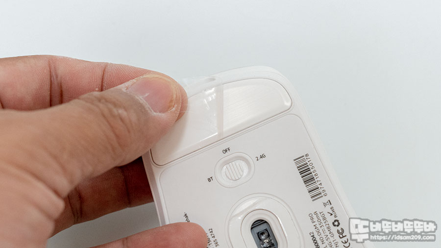 바닥면에 유일하게 조작하는 스위치는 BT / RF 2.4 GHz 무선과 Off로 설정 시 충전 겸 유선으로 사용할 수 있어 상황에 맞게 사용하시면 좋습니다.