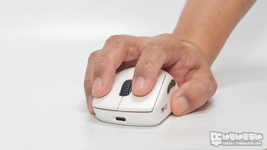 거기에 마우스 하우징의 상단의 둥글게 돌출된 부분이 정가운데 위치하고 있어 클로우 그립 또는 팜 그립 시 좋은 그립감을 제공합니다.