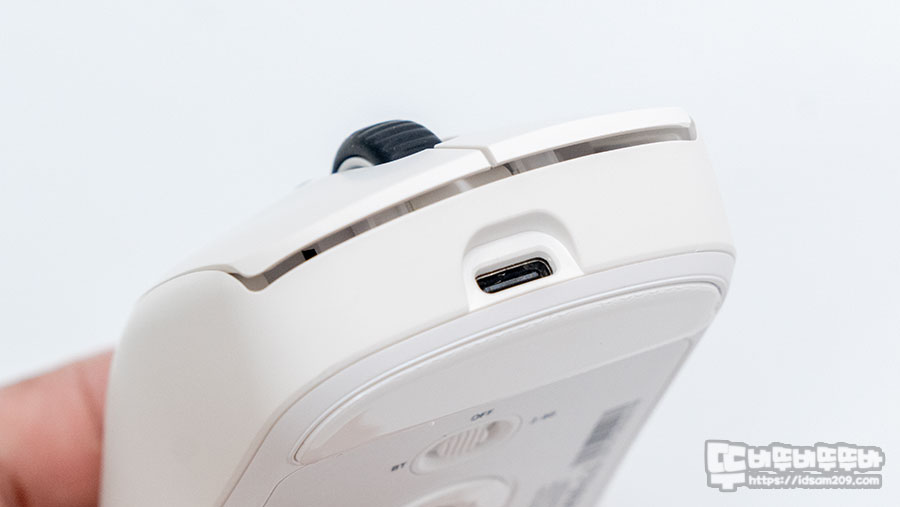 마우스 전면의 USB-C 단자 모습.