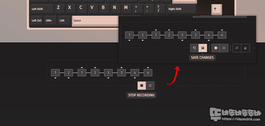 키 프레스 모드에서도 키 입력 후 저장을 꼭 해주셔야 합니다.