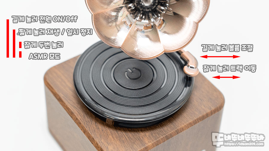 제품의 디자인은 에디슨 시절에 나팔이 달린 제품은 축음기를 작게 만든 미니어처 형태로 제품 상세 이미지만 보면 크기가 어느 정도 있을 거 같은데 실제 모습을 보니 너무 작네요 ㅎㅎ