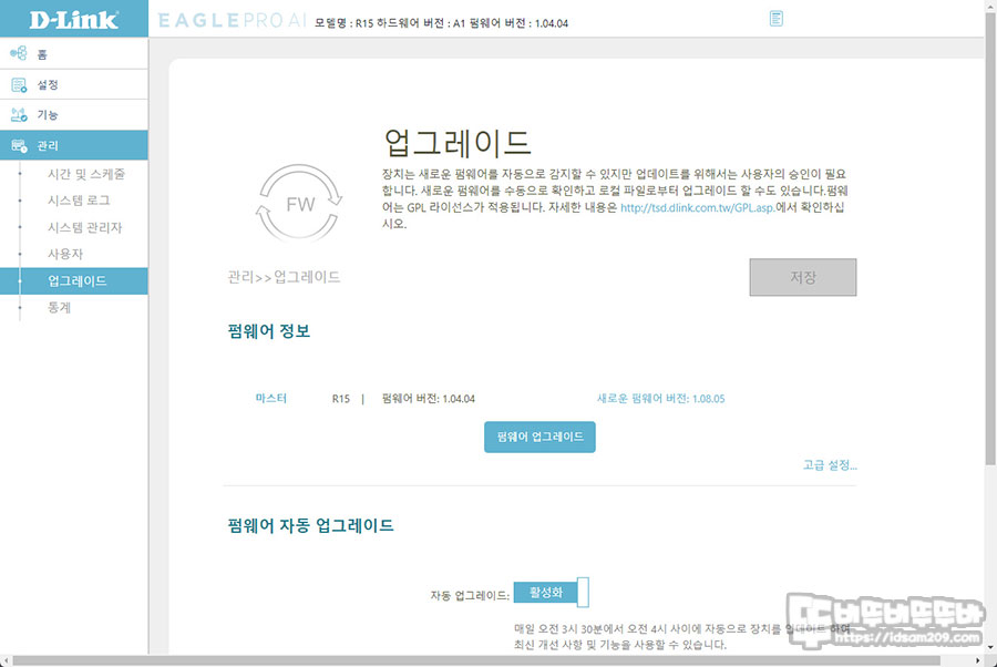 웹브라우저 주소창에 192.168.0.1을 입력하면 관리자 메뉴로 접속하면 펌웨어 업그레이드를 진행하더군요.