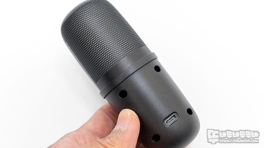 스탠드 뒤쪽에는 USB-C 케이블이 관통할 수 있는 구조로 마이크를 정면으로 놓고 사용하는 구조라 스탠드가 걸림이 있지 않을까 했는데 걱정할 필요가 없었습니다.