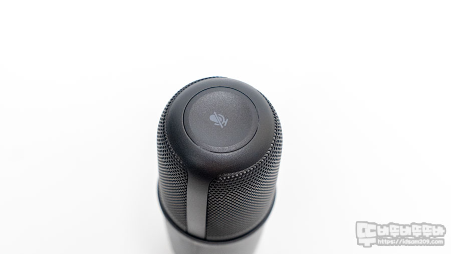 마이크 윗부분의 음소거 버튼은 터치 방식으로 작동하며 터치센서 감도가 좋아 표면에 손이 살짝만 닿아도 빠르게 작동하여 마이크에 충격을 주지 않기에 사용하는데 부담이 없고요.