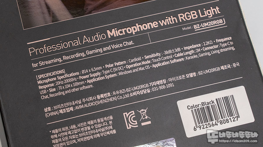 #Britz #브리츠 #방송용마이크 #USB #콘덴서마이크 #스트리밍마이크 #게임용마이크 #BZ #UM20RGB #뚜비뚜비뚜뚜바 #idsam209