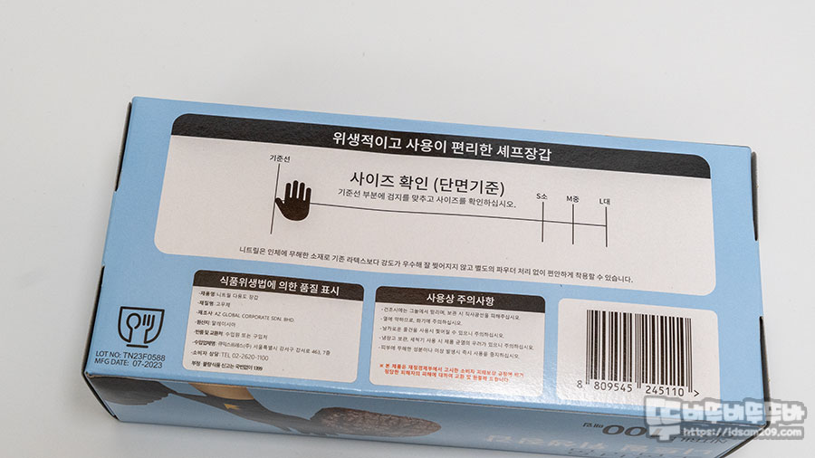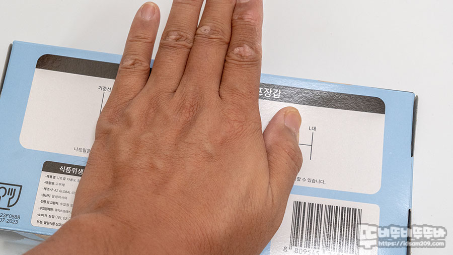 패키지 아랫면에는 제품의 사이즈를 선택하는데 도움이 되는 측정자가 인쇄되어 있어 손을 직접 올려보고 사이즈를 가늠할 수 있었습니다.