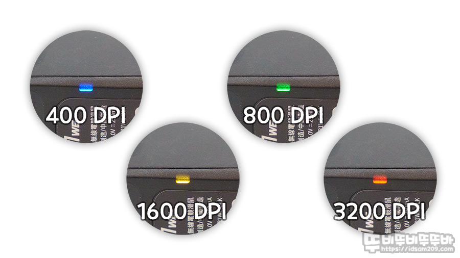 기본적인 DPI 컬러는 마우스 측면을 통해 확인이 가능하며 네모난 컬러 박스를 선택 시 컬러 변경이 가능합니다.