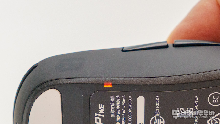 사이드 버튼 바닥면과 옆에 반반 걸쳐서 표현되는 DPI LED 인디케이터는 마우스 그립을 하더라도 옆에서 빠르게 확인할 수 있어서 좋은 편입니다.
