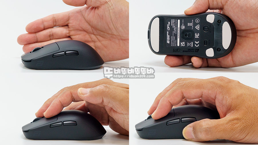 보통 상단에 있어야 할 DPI 버튼이 바닥면에 위치한 엔드게임기어 마우스 제품군은 마우스 버튼 부분이 상당히 넓게 느껴져 깔끔한 느낌을 줍니다.