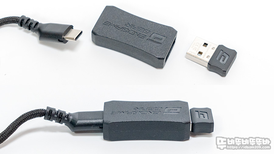 2.4GHz 무선 리시버는 USB-C to A 익스텐더를 이용하여 책상 위에 올려놓고 사용하시거나 무선 리시버 동글을 본체에 꽂아 사용할 수 있으니 방안에 무선 신호 간섭 여부에 따라 잘 활용하시기 바랍니다.