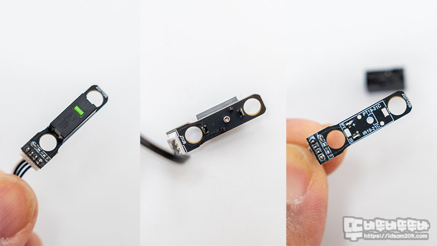Kaih Go 광 스위치는 기판에 납땜되지 않고 돌출된 걸쇠와 기판이 결합되는 형태이며 버튼 앞쪽에 양쪽으로 바라보고 있는 센서를 통해 움직임을 감지하는 광 스위치 방식이라 일반적인 기계식 마이크로 스위치를 사용하지 못하는 점은 유저분들의 취향에 따라 조금 아쉬움이 있을 거 같네요.