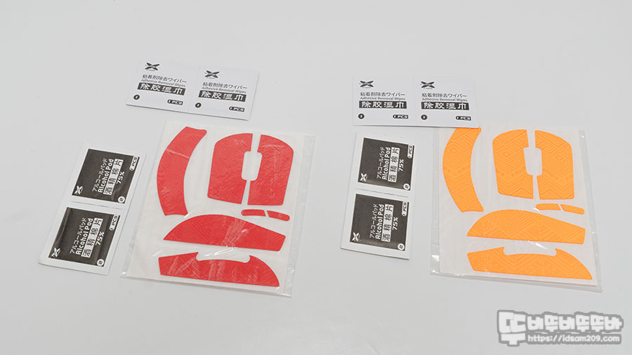 구성품은 GECKO 마우스 그립 테이프와 접착제 제거용 페이퍼(화이트가 많이 보이는 거), 알코올 페이퍼(검은색이 많이 보이는 거)로 구성되어 있습니다.
