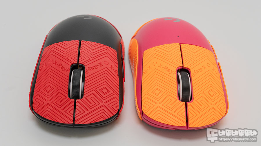로지텍 지슈라 블랙(아이 사용), 핑크(제가 사용)에 각각 레드와 오렌지로 부착할 예정인데요.