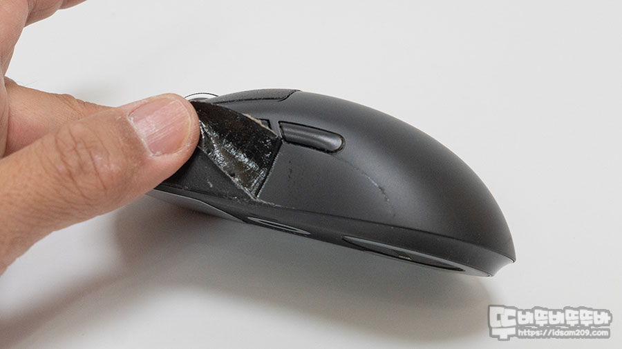 X-RAYPAD PORON GECKO 마우스 그립 테이프 구성품에 있는 접착제 제거 물티슈를 이용하면 간단하게 제거할 수 있었습니다.