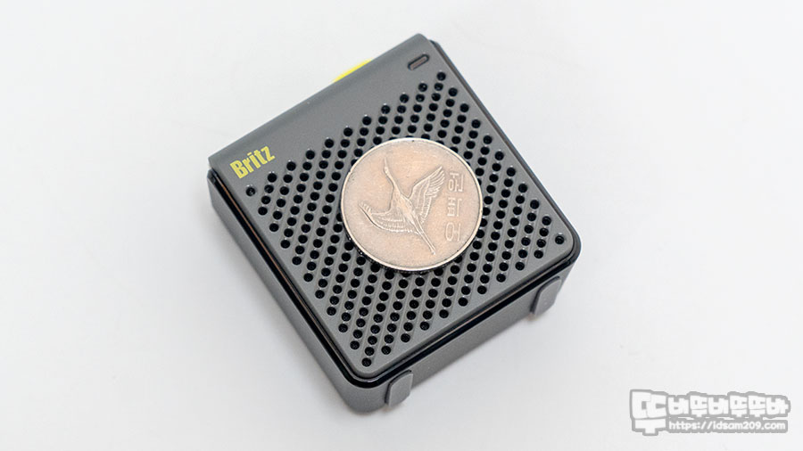 이번 리뷰할 제품은 500원 동전보다 조금 큰 미니어처 느낌의 블루투스 스피커 브리츠 BR-ST202입니다.