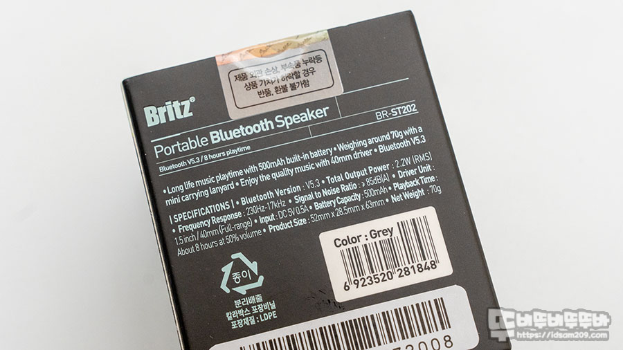 Britz 브리츠 BR-ST202는 52mm X 28.5mm X 63mm 사이즈로 아웃도어용으로 출시한 블루투스 스피커인데요.