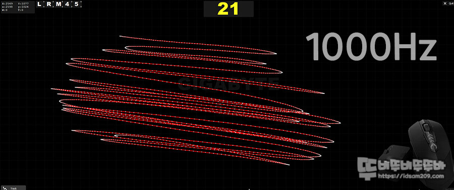 폴링 레이트가 높아질수록 더욱더 촘촘해지는 신호 간격을 확인할 수 있는데 공홈에서는 4K/8KHz를 사용하기 위해서 144Hz 재생률의 모니터 사용을 권장하고 있네요.