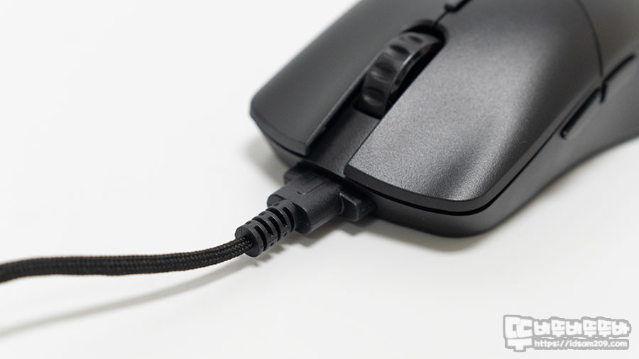 마우스 충전과 유선 사용을 지원하는 USB-C to A 케이블의 경우 마우스 또는 무선 리시버에 연결되는 부분은 단자 파손을 최소화하기 위해 좌우에 고정이 가능한 몰딩이 추가되어 케이블 연결 시 움직임 없이 딱 고정해 주는 역할을 합니다.