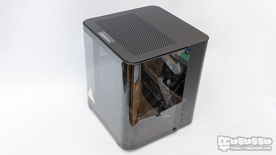 큐브 형태의 어항 느낌을 주는 미니 케이스 JONSBO TK-1 모습을 살펴보면 케이스의 절반을 차지하는 강화유리 패널이 인상적인데요.
