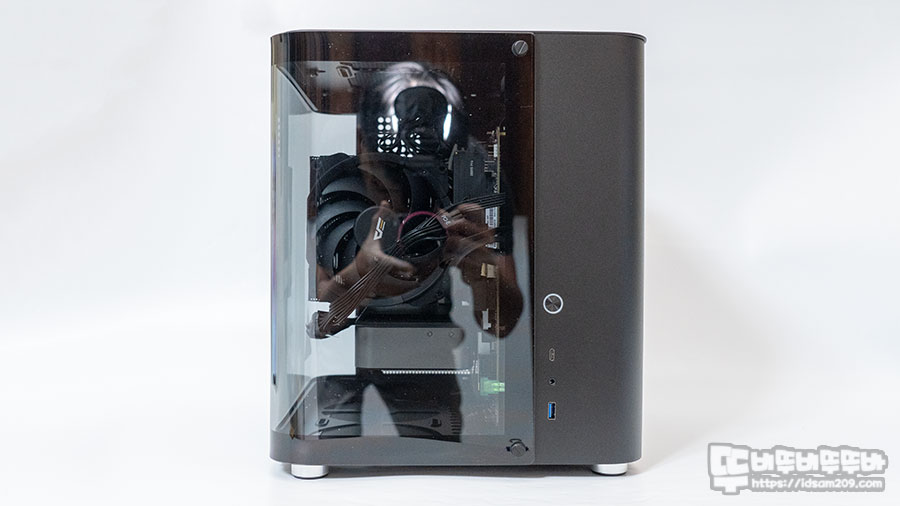 케이스 전면에는 전원버튼, USB-C (USB 3.2 Gen2), 4극 오디오 단자, USB 3.0(USB 3.2 Gen1) 단자로 심플하게 구성되어 있지만 일부 유저들은 부족한 전면 포트가 불편하실 수 있을 거 같네요.