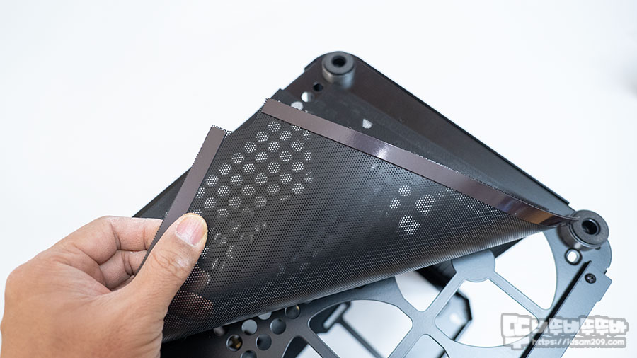 공기 유입이 되는 부분이라 그런지 고무자석이 사용되어 탈부착 및 유지보수가 편리한 먼지 필터가 부착되어 있습니다.