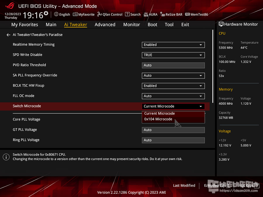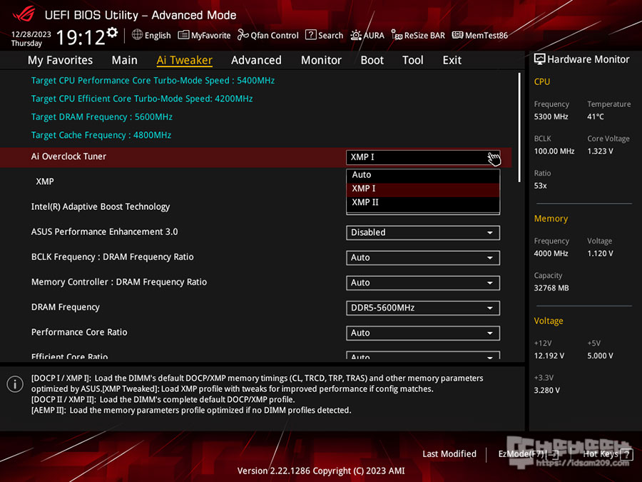 2023/12/13 Ver 1602 가장 최신 버전으로 업데이트를 했지만 Ai Overclock Tuner 항목에서 보지 않는데 사용된 메모리는 O.C를 지원하지 않는 마이크론 Crucial DDR5-5600 CL46 PRO (16Gx2) 모델이라 그런 거 같더군요.