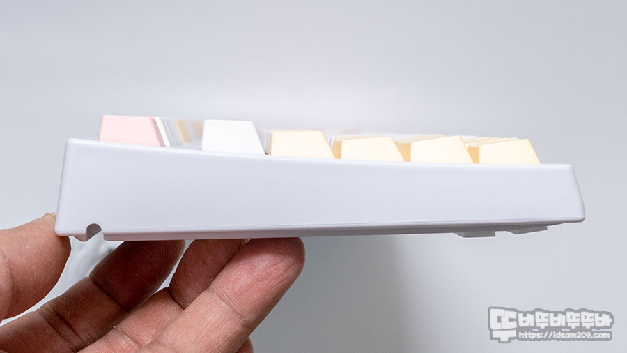 자체 경사로 제된 키보드 측면 모습.