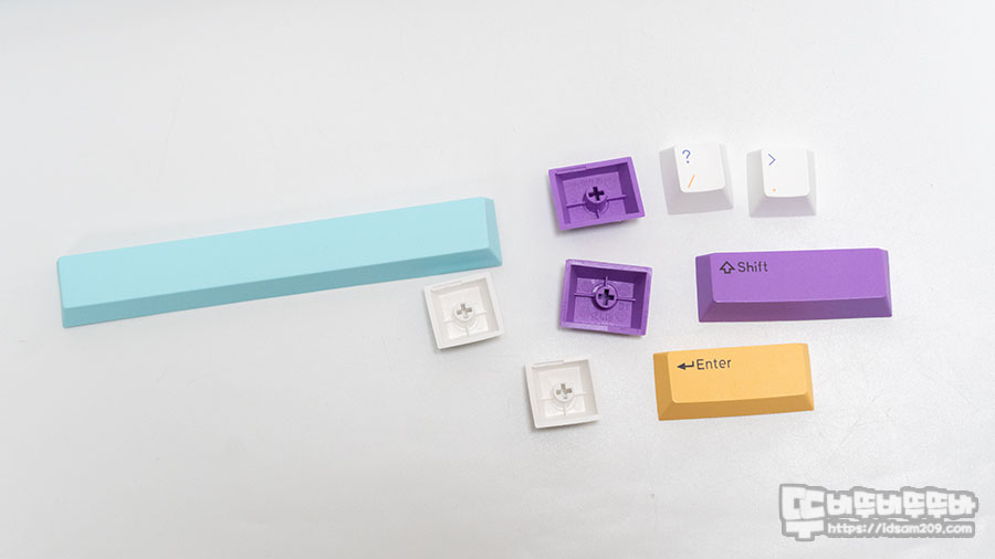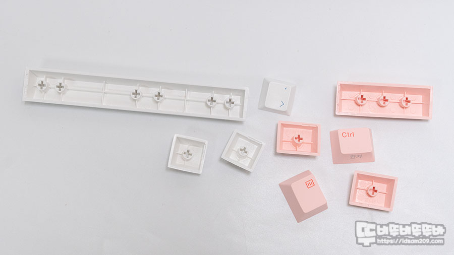 염료승화 방식의 각인이 적용된 PBT 키캡 모습.