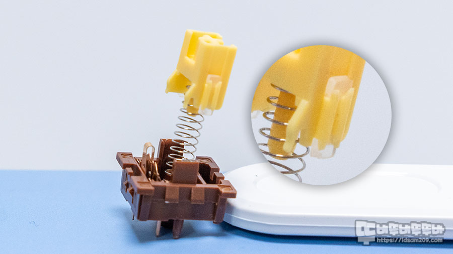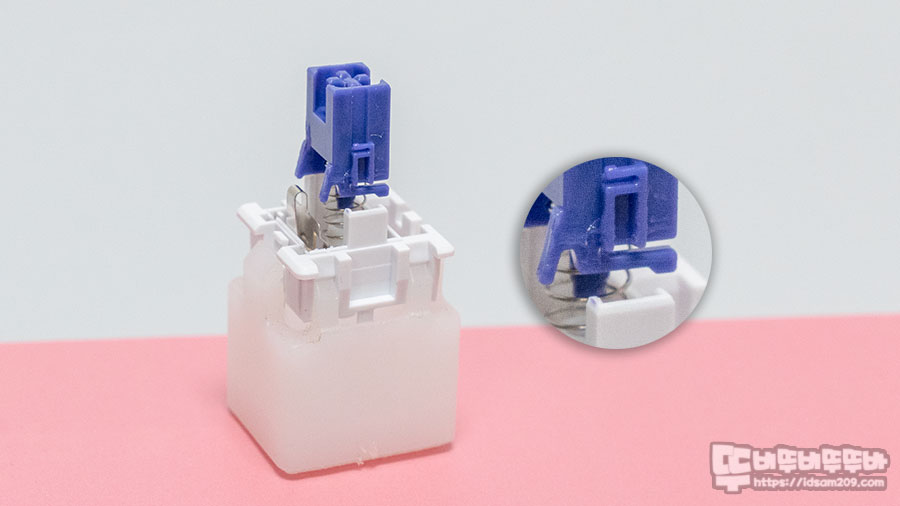그래서 스템 하단을 살펴보면 "ㄴ"자 형태의 사출 구조가 추가되어 스탬이 눌렸을 때 받쳐주는 형태로 저소음을 구현하는 게 특징으로 생각보다 타이핑 시 손가락에 부담이 없어서 정말 좋았습니다.