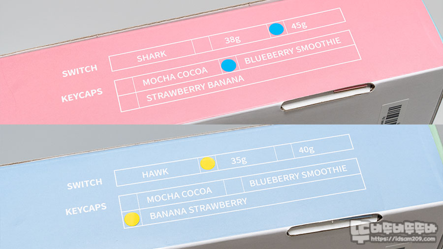 뽀송과 토독 제품은 108 풀배열 또는 87 텐키리스 그리고 바나나 딸기/블루베리 스무디/모카 코코아 3가지 컬러로 출시되어 선택의 폭이 넓은 편입니다.