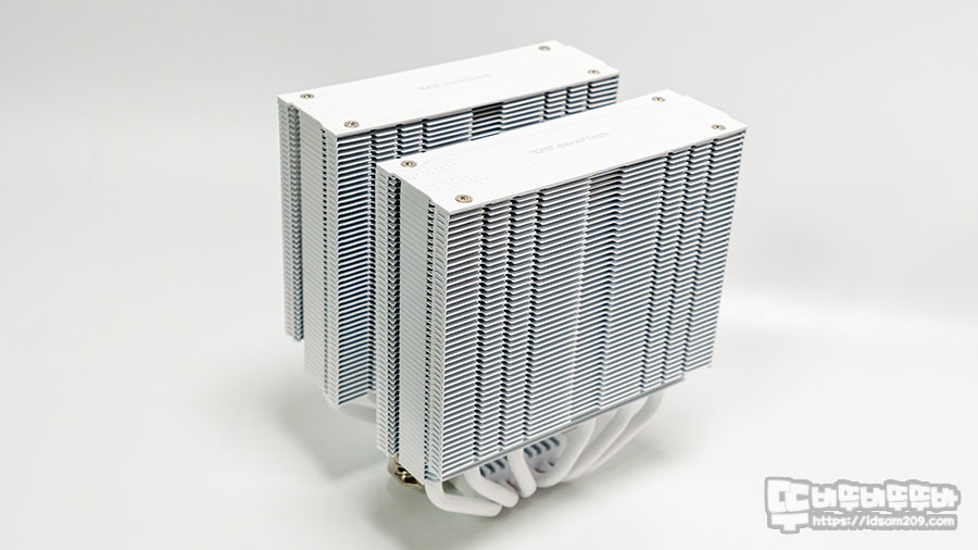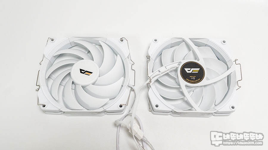 알루미늄을 히트싱크는 산화를 방지하기 위해 화이트 또는 블랙으로 코팅처리하여 고급스러운 느낌을 주며 쿨러 상단에는 다크플래쉬 로고로 아이덴티티를 표현하고 있습니다.