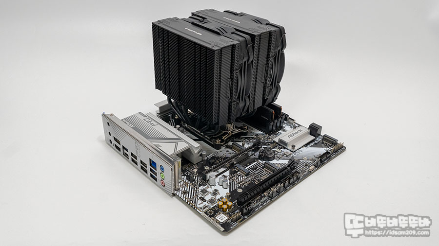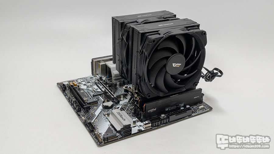 ASRock B650M Pro RS 메인보드에 다크플래쉬 Ellsworth D21 CPU 쿨러를 장착한 모습.