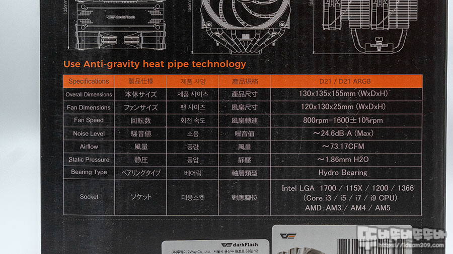 지금까지 다크플래쉬 Ellsworth D21 CPU 쿨러에 대하여 알아보았습니다.