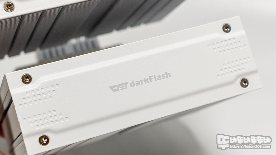 알루미늄을 히트싱크는 산화를 방지하기 위해 화이트 또는 블랙으로 코팅처리하여 고급스러운 느낌을 주며 쿨러 상단에는 다크플래쉬 로고로 아이덴티티를 표현하고 있습니다.